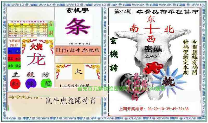 314期:九肖【龙牛狗马猪兔鼠鸡虎】开:羊23错
