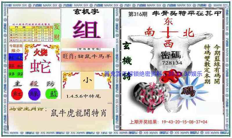 316期:九肖【龙蛇猴狗猪鸡牛鼠】开:马24